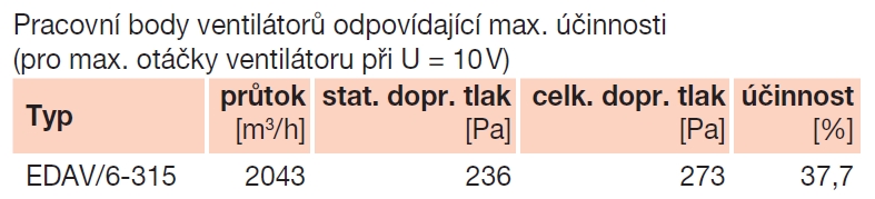 typový klíč pro objednávání | pracovní body ventilátoru odpovídající max. účinnosti |