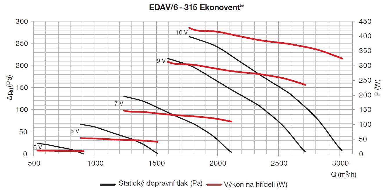 * na výtlačné straně ventilátoru, v bodě s maximální účinností, U = 10 V