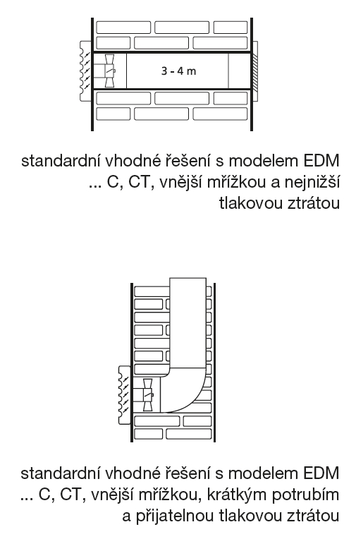 ![]() | Pokyny Ventilátory jsou vhodné pro krátké vzduchovody s velmi nízkou tlakovou ztrátou nebo k odvětrání přes stěnu. Ventilátory lze použít ve spojení s hygrostatem HIG 2 nebo s hygrostatem kombinovaným s termostatem pro odvětrání vlhkých prostor. Varianty R a T je možné spouštět tlačítkem. | |