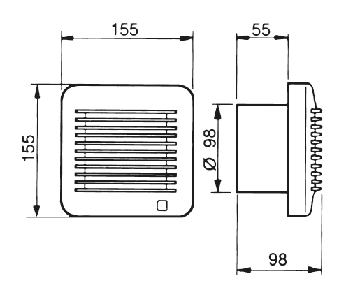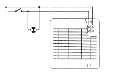 ![]() | Svorkovnice Svorkovnice je přístupná po sejmutí čelní mřížky ventilátoru. Připojení je kabelem pod omítkou nebo po omítce. Svorkovnice obsahuje odlehčovací sponu proti vytržení kabelu. | |