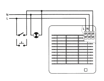 ![]() | Svorkovnice Svorkovnice je přístupná po sejmutí čelní mřížky ventilátoru. Připojení je kabelem pod omítkou nebo po omítce. Svorkovnice obsahuje odlehčovací sponu proti vytržení kabelu. | |