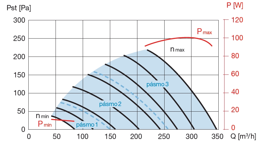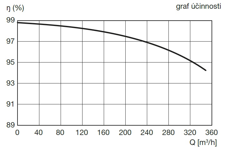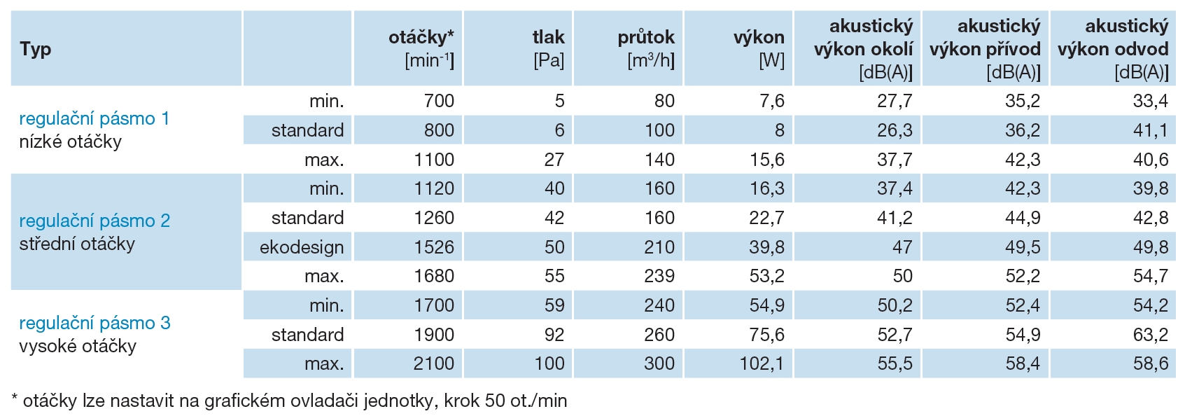 | průtok* [m3/h] | příkon [W] | proud [A] | napětí [V] | max. teplota [˚C] | akust. výkon [dB(A)] | hmotnost [kg] |