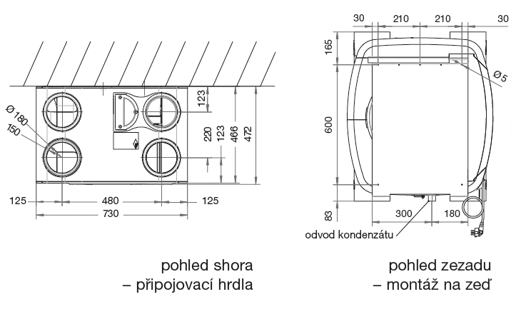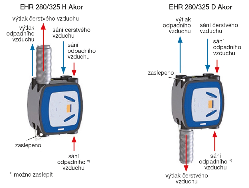 ![]() | Varianty • EHR 280/325 H Akor RF - horní výtlak čerstvého vzduchu • EHR 280/325 D Akor RF - spodní výtlak čerstvého vzduchu Levé nebo pravé provedení se ze všech variant získá záměnou předního a zadního panelu. | |