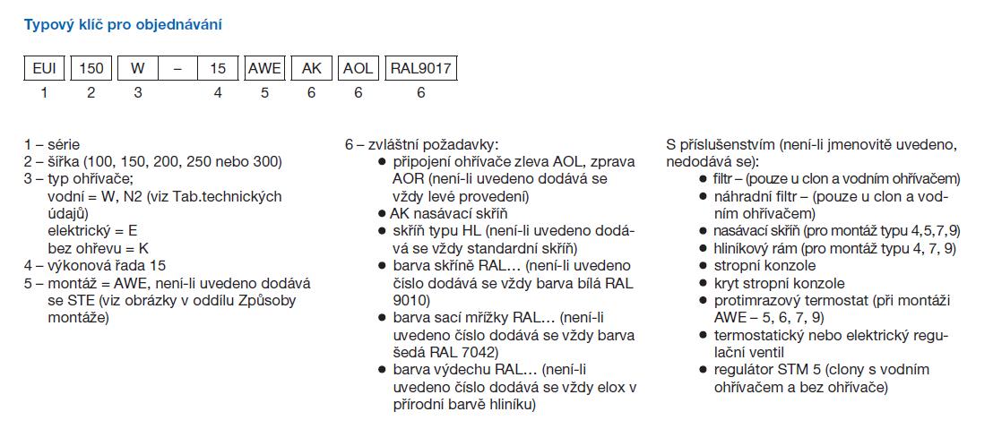 ![]() | Ventilátory Jsou použity vysoce výkonné oboustranně sací radiální ventilátory, pětiotáčkové nebo tříotáčkové (u clon s elektrickým ohřívačem) motory s termokontakty. Krytí IP20. | |