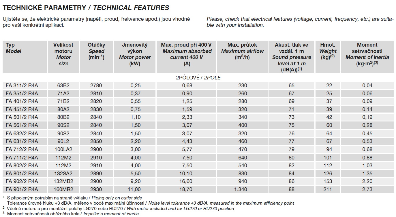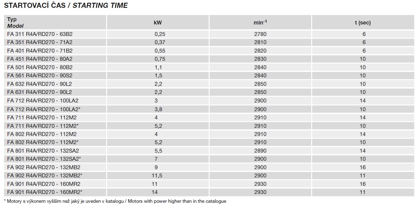 technické parametry | radiální oběžné kolo | tabulka použití | startovací čas | |||