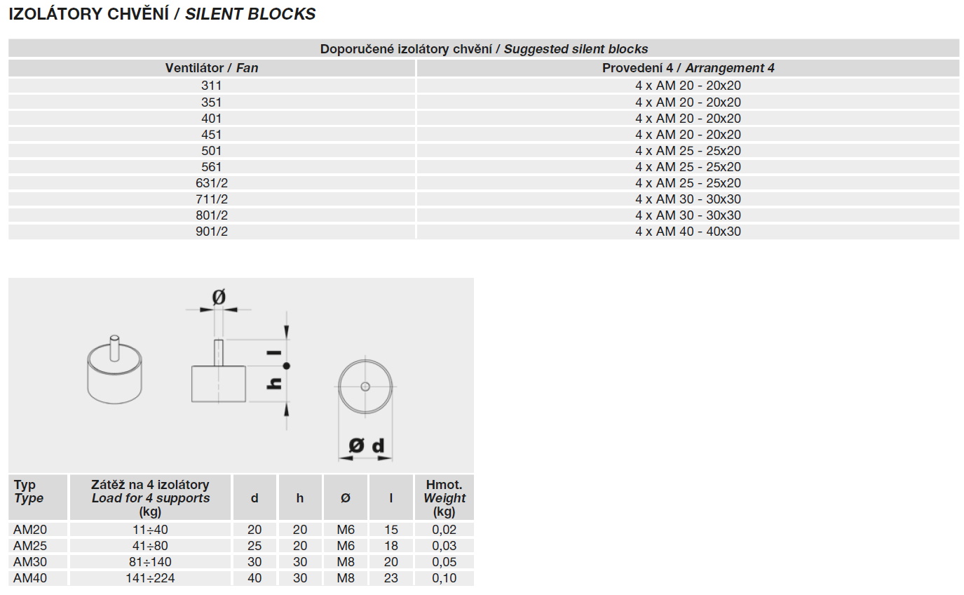 izolátory chvění | doporučené příslušenství |