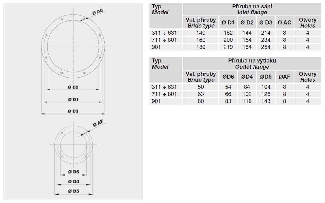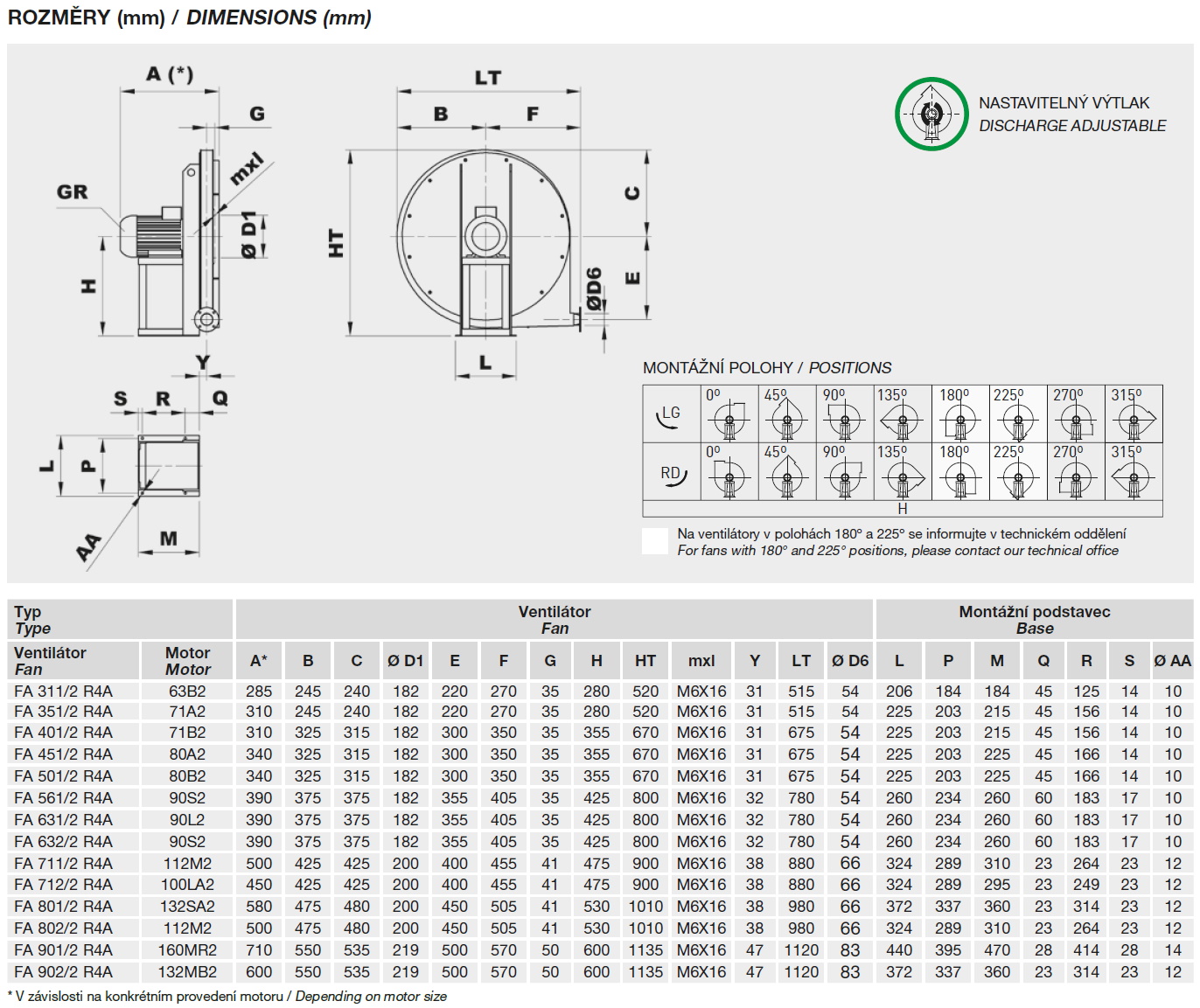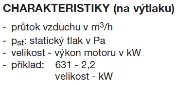 ![]() | Informace Jednostranně sací radiální ventilátor s motorem napřímo. Vyroben z ocelového plechu chráněného kataforezním základním nátěrem a polyuretanovým lakem. Navržen pro trvalý provoz, teplota přepravované vzdušiny od -20 °C do +60 °C. Motory: 2pólové, IE 3* s vysokou účinností, třífázové provedení 230/400 V, 50 Hz do velikosti motoru 132. Pro velikosti motoru nad 132 400/690 V, 50 Hz. Krytí IP55, izolace třídy F. * Od 0,75 kW může být motor IE 2 a řízen frekvenčním měničem. Na vyžádání: • nerez a další materiály • dvourychlostní motory • 60 Hz provedení • lakované v různých barvách RAL • ventilátor bez podstavce (provedení 5) do velikosti motoru 160 • vysokoteplotní provedení (až do 150 °C, provedení B s chladicím kotoučem) • ventilátor s pohonem na spojku (provedení 8) • revizní dvířka, odvod kondenzátu, ucpávka hřídele • svařovaná spirální kříň • tepelně izolovaná spirální skříň ATEX provedení: Na vyžádání možnost dodání v nevýbušném provedení podle směrnice ATEX pro třífázové motory a pro okolní atmosférické podmínky definované normou EN 14986. Rozsah teplot -20 °C až +60 °C, absolutní tlak 0,8 až 1,1 bar. • Plyn: 2G IIB T2-T3-T4, motor Exd IIB nebo ExeII 2G IIB+H2 T2-T3-T4, motor ExdIIC 3G IIB T2-T3-T4, motor ExnA (pouze pro zónu 3G) 3G IIB+H2 T2-T3-T4, motor ExnA (pouze pro zónu 3G) • Nevodivý prach: 2D IIIB T125°C-T135°C-T195°CT295°C 3D IIIB T125°C-T135°C-T195°CT295°C • Vodivý prach (povinný motor IP65): 2D IIIC T125°C-T135°C-T195°CT295°C 3D IIIC T125°C-T135°C-T195°CT295°C | |