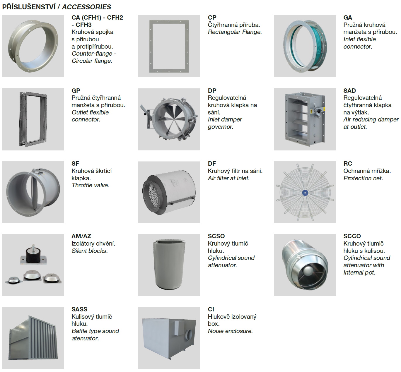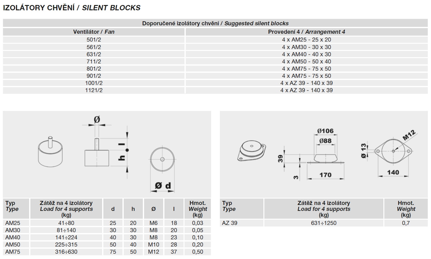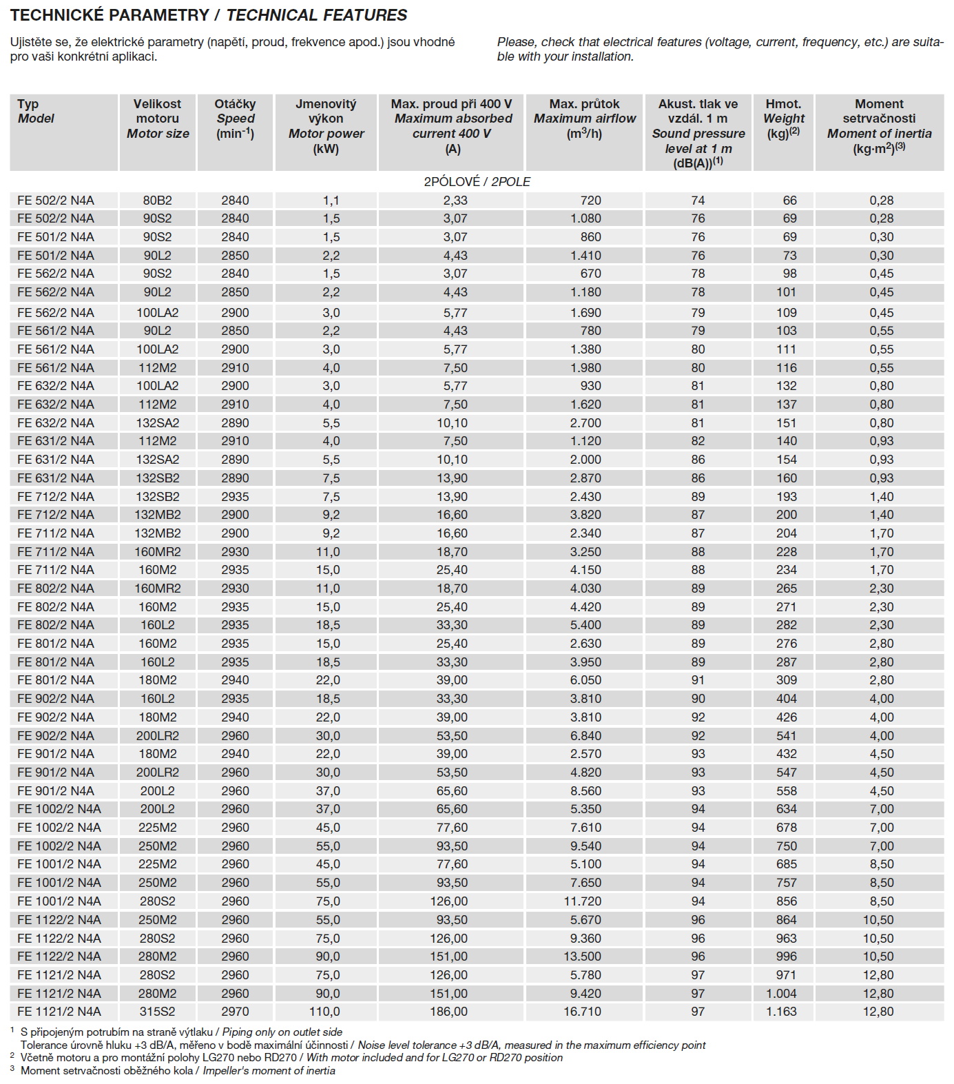 technické parametry | oběžné kolo s dozadu zahnutými lopatkami | tabulka použití | izolátory chvění | |||