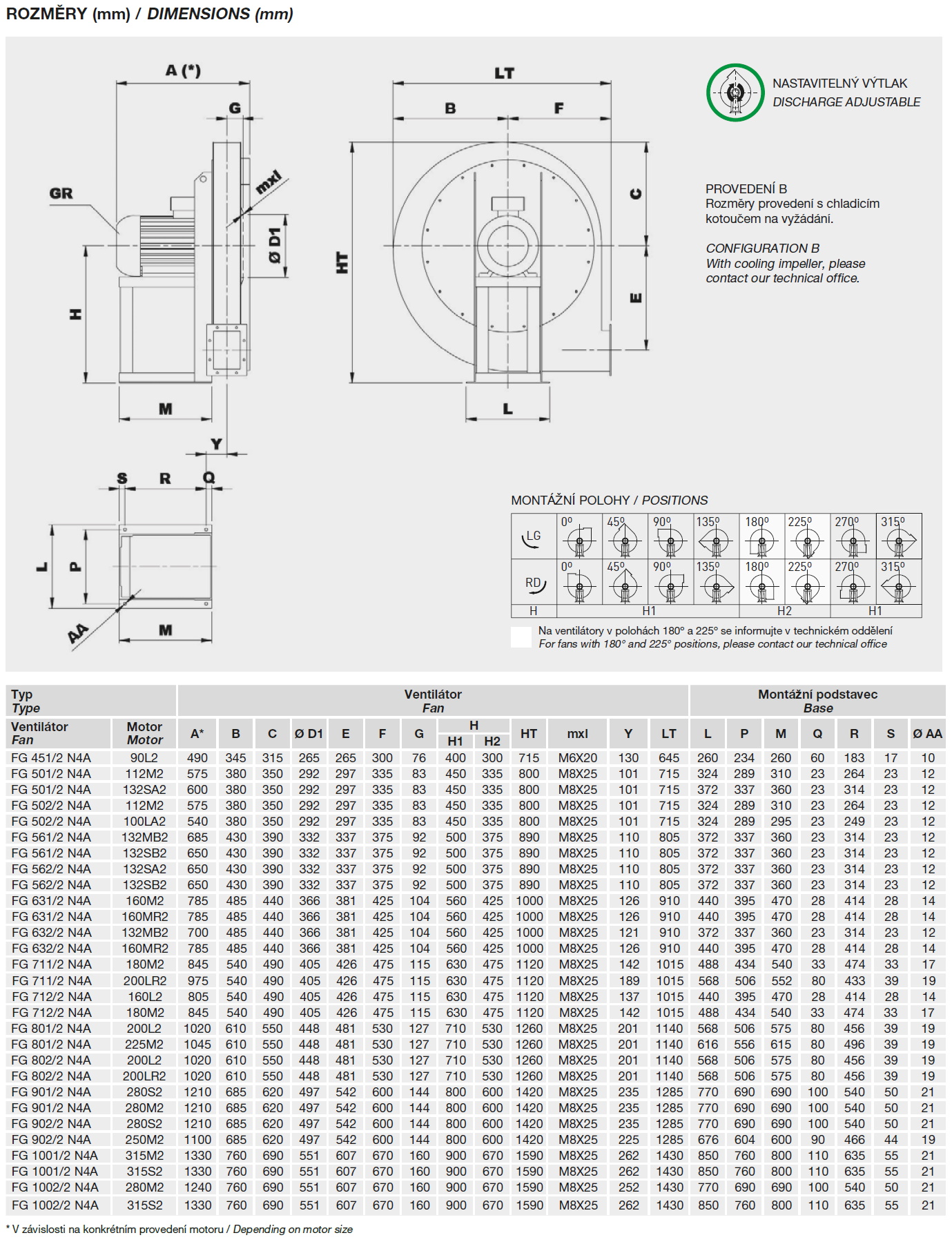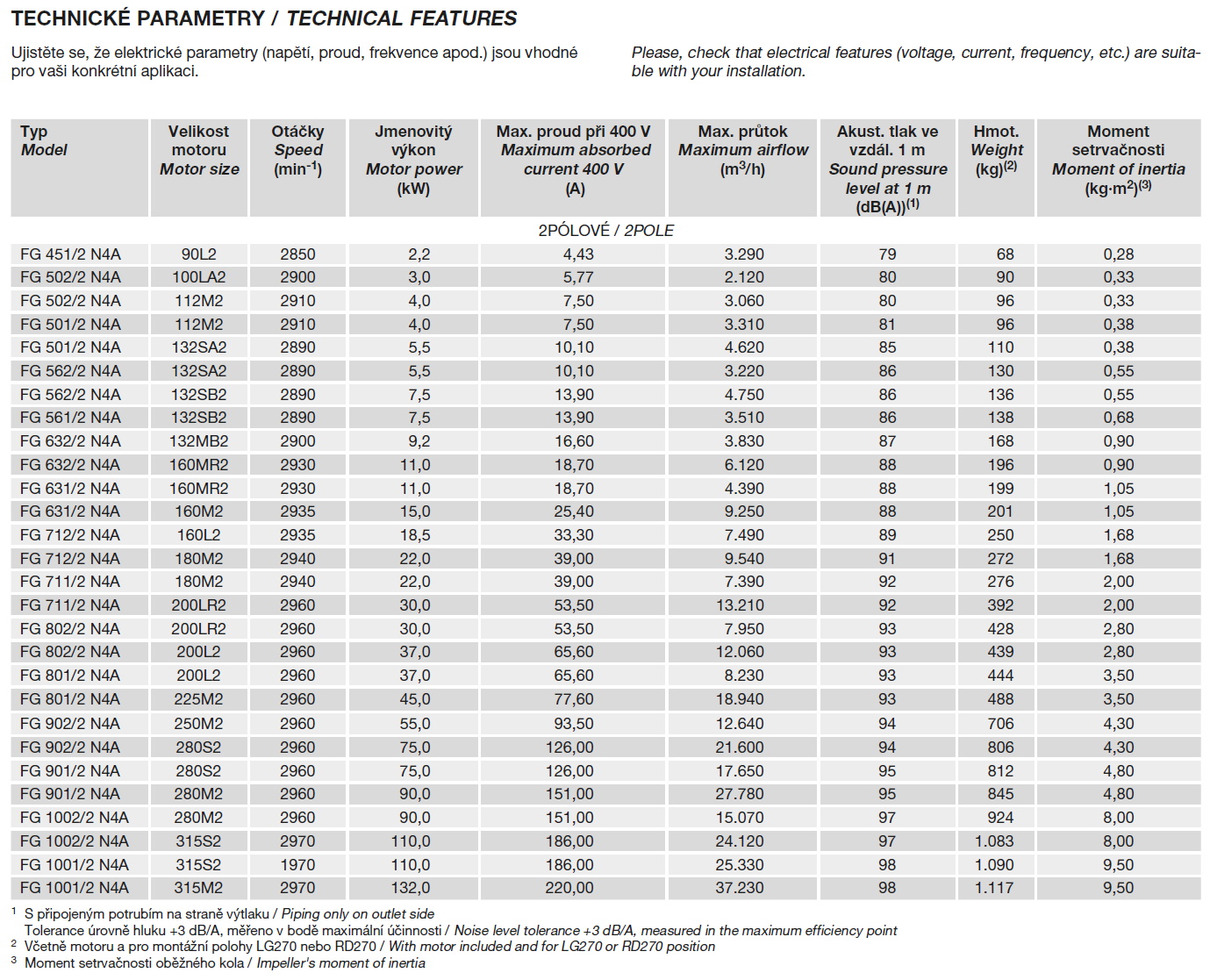 technické parametry | oběžné kolo s dozadu zahnutými lopatkami | tabulka použití | izolátory chvění | |||