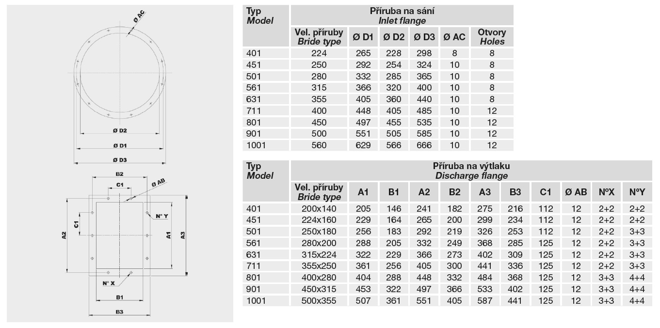 oběžné kolo s dozadu zahnutými lopatkami | tabulka použití | izolátory chvění | doporučené příslušenství |