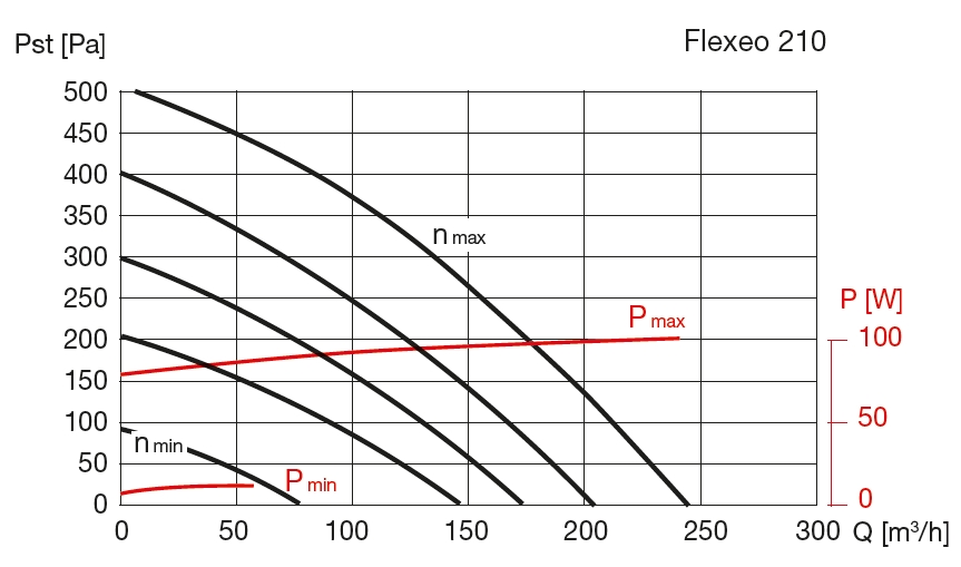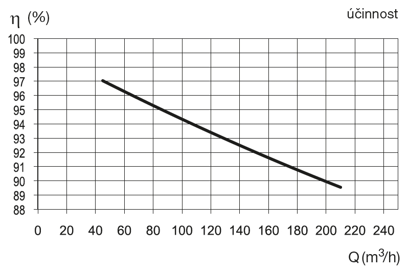 | max. průtok při 100 Pa [m3/h] | příkon [W] | napětí [V] | akustický tlak* [dB(A)] | max. účinnost [%] |