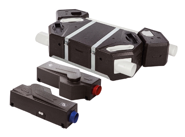 ![]() | Ventilátory Samostatné ventilátory s dozadu zahnutými lopatkami a s EC elektromotory jsou umístěny ve skříny černé barvy vyrobené z kvalitního EPP. | |