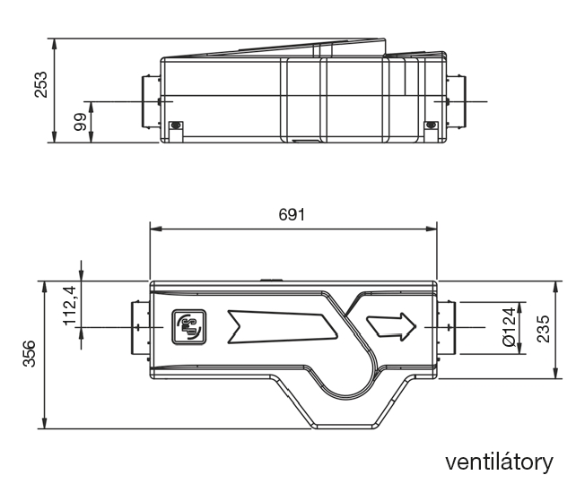 ![]() | Skříň Skříň je černé barvy a je vyrobena z kvalitního EPP plastu. Hrdla jsou bílá a jsou otočná o 90º. Vnitřní část jednotky je snadno přístupná díky speciálním napínacím zámkům umístěným na skříni. Ze spodní části skříně je vyveden odvod kondenzátu. Jednotka je ve verzi BP vybavena obtokem výměníku. | |