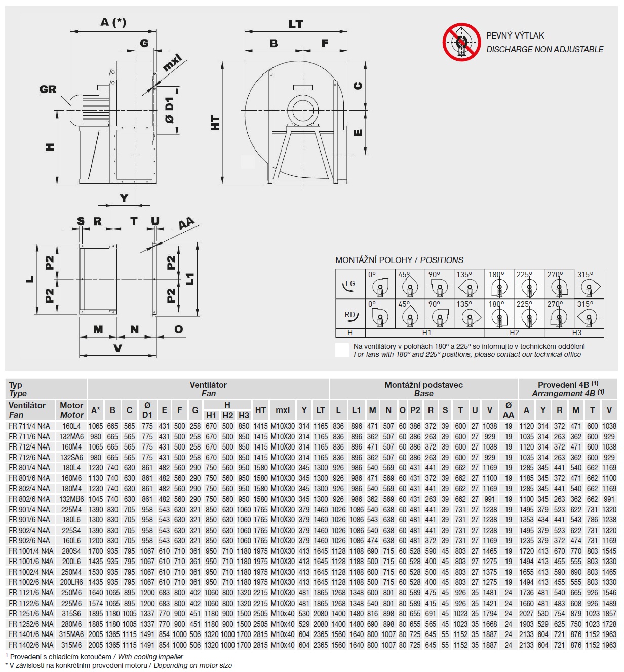 * s připojeným potrubím na straně výtlaku, tolerance úrovně hluku +3 dB(A), měřeno v bodě maximální účinnosti; ** včetně motoru a pro montážní polohy LG270 nebo RD270; *** moment setrvačnosti oběžného kola