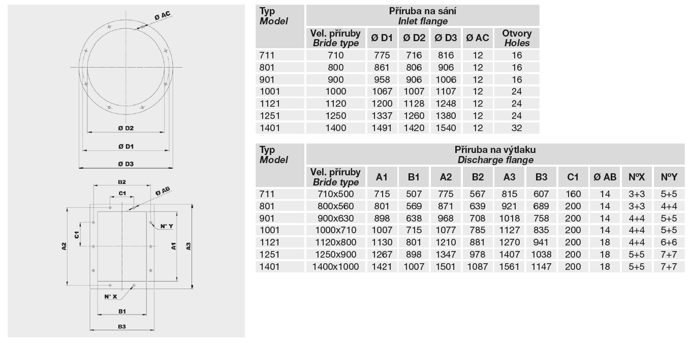 ![]() | Informace Jednostranně sací radiální ventilátor s motorem napřímo. Vyroben z ocelového plechu chráněného kataforezním základním nátěrem a polyuretanovým lakem. Navržen pro trvalý provoz, teplota přepravované vzdušiny od -20 °C do +60 °C. Motory: 2, 4 nebo 6pólové, IE 3* s vysokou účinností, třífázové provedení 230/400 V, 50 Hz do velikosti motoru 132. Pro velikosti motoru nad 132 400/690 V, 50 Hz. Krytí IP55, izolace třídy F. * Od 0,75 kW může být motor IE 2 a řízen frekvenčním měničem. Na vyžádání: • nerez a další materiály • dvourychlostní motory • 60 Hz provedení • lakované v různých barvách RAL • ventilátor bez podstavce (provedení 5) do velikosti motoru 160 • vysokoteplotní provedení (až do 150 °C, provedení B s chladicím kotoučem) • ventilátor s pohonem na spojku (provedení 8) • revizní dvířka, odvod kondenzátu, ucpávka hřídele • svařovaná spirální skříň • tepelně izolovaná spirální skříň ATEX provedení: Na vyžádání možnost dodání v nevýbušném provedení podle směrnice ATEX pro třífázové motory a pro okolní atmosférické podmínky definované normou EN 14986. Rozsah teplot -20 °C až +60 °C, absolutní tlak 0,8 až 1,1 bar. • Plyn: 2G IIB T2-T3-T4, motor ExdIIB nebo ExeII 2G IIB+H2 T2-T3-T4, motor ExdIIC 3G IIB T2-T3-T4, motor ExnA (pouze pro zónu 3G) 3G IIB+H2 T2-T3-T4, motor ExnA (pouze pro zónu 3G) • Nevodivý prach: 2D IIIB T125°C-T135°C-T195°CT295°C 3D IIIB T125°C-T135°C-T195°CT295°C • Vodivý prach (povinný motor IP65): 2D IIIC T125°C-T135°C-T195°CT295°C 3D IIIC T125°C-T135°C-T195°CT295°C | |