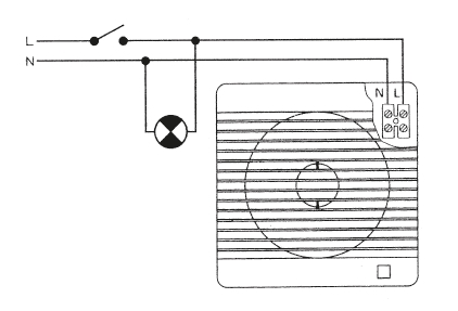 ![]() | Svorkovnice Svorkovnice je přístupná po sejmutí čelní mřížky ventilátoru. Připojení je kabelem pod omítkou. | |