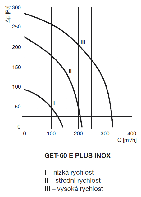 | max. průtok [m3/h] | Ø připojení [mm] | počet motorů | rychlosti | napětí [V] | výkon [W] | proud [A] | akust. tlak* [dB(A)] |