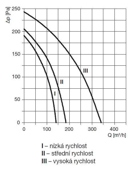 | max. průtok [m3/h] | Ø připojení [mm] | počet motorů | rychlosti | napětí [V] | výkon [W] | proud [A] | akust. tlak* [dB(A)] |