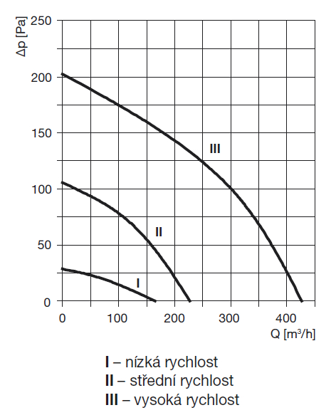 | max. průtok [m3/h] | Ø připojení [mm] | počet motorů | rychlosti | napětí [V] | výkon [W] | proud [A] | akust. tlak* [dB(A)] |