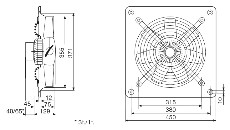 ![]() | Směr otáčení Směr otáčení je možno měnit. Se standardním oběžným kolem klesne při opačném směru otáčení průtok o cca 30%. Průtok vzdušiny je standardně od motoru k oběžnému kolu. | |