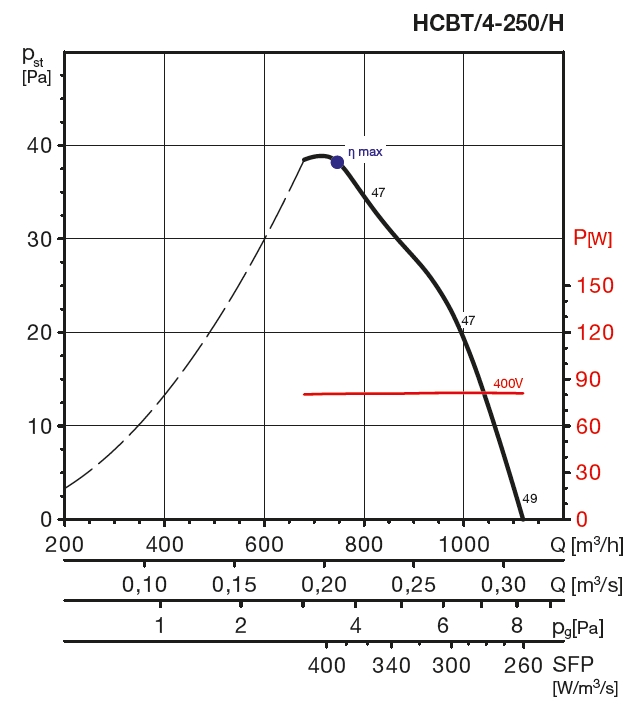 | otáčky [min-1] | průtok (0 Pa) [m3/h] | příkon [W] | napětí [V] | proud [A] | max. teplota [°C] | akust. tlak [dB(A)] | hmotnost [kg] | regulátor |