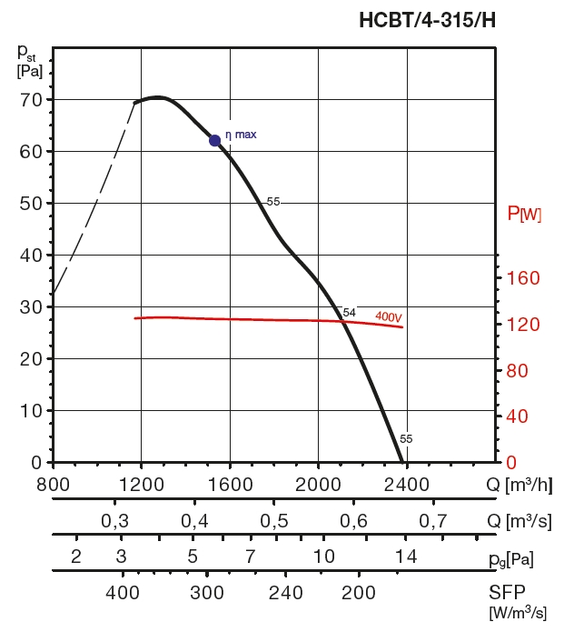 | otáčky [min-1] | průtok (0 Pa) [m3/h] | příkon [W] | napětí [V] | proud [A] | max. teplota [°C] | akust. tlak [dB(A)] | hmotnost [kg] | regulátor |