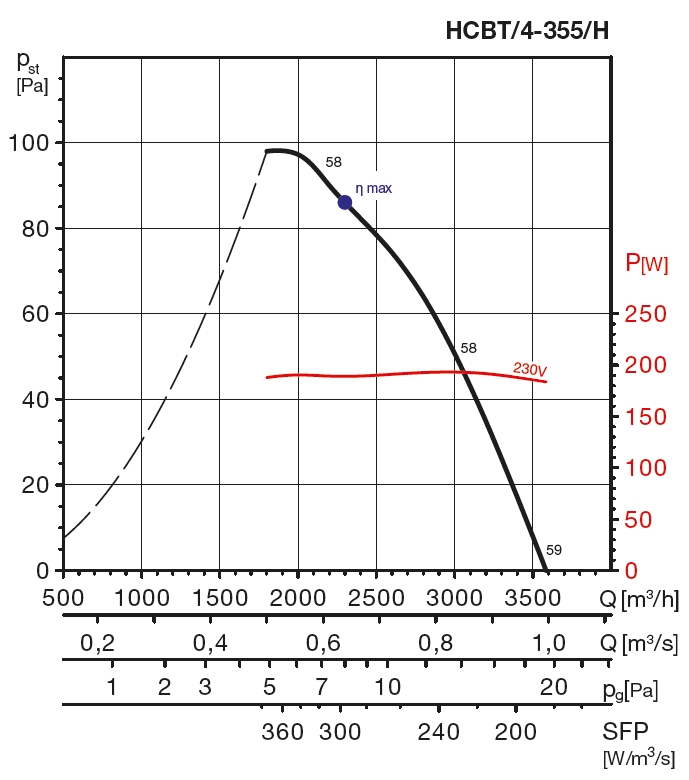 | otáčky [min-1] | průtok (0 Pa) [m3/h] | příkon [kW] | napětí [V] | proud [A] | max. teplota [°C] | akustický tlak [dB(A)] | hmotnost [kg] | Ia/In | te [s] |