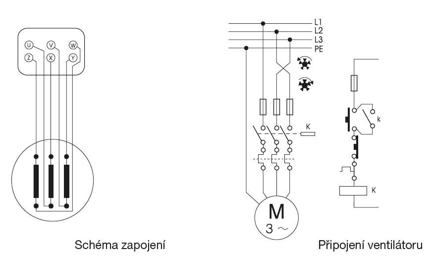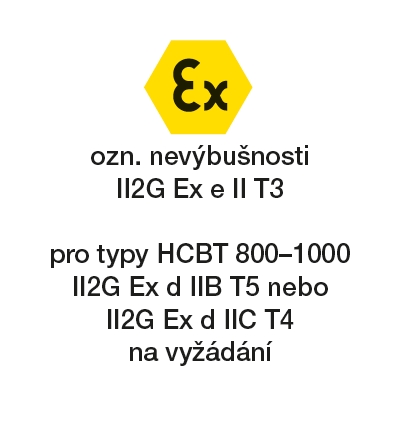 ![]() | Pokyny Informujte se na speciální provedení a aktuálně dodávané speciální příslušenství. Vyžádejte si informace o dodacích termínech. Pozor: ventilátory jsou ve speciálním provedení pro ČR. Nelze použít náhradní díly standardně dodávané výrobcem či jinými obchodními organizacemi. Ventilátory HCBT, TCBT/4-315 Ex lze v síti 3 x 400 V provozovat výlučně v zapojení do Y.