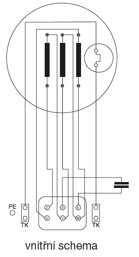 ![]() | Svorkovnice Svorkovnice je z černého plastu, jednofázového provedení má rozběhový kondenzátor. Svorkovnice je umístěna na motoru. | |