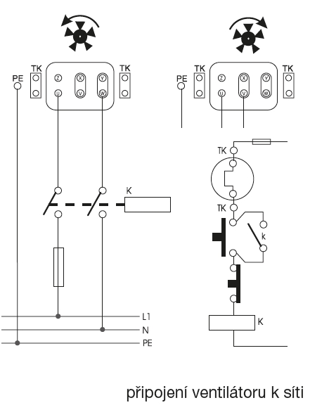 ![]() | Směr otáčení Směr otáčení je možno měnit u jednofázových i třífázových motorů. Se standardním oběžným kolem klesne při opačném smyslu otáčení průtok o cca 30%. U nástěnného provedení je standardně průtok vzdušiny od motoru k oběžnému kolu. | |