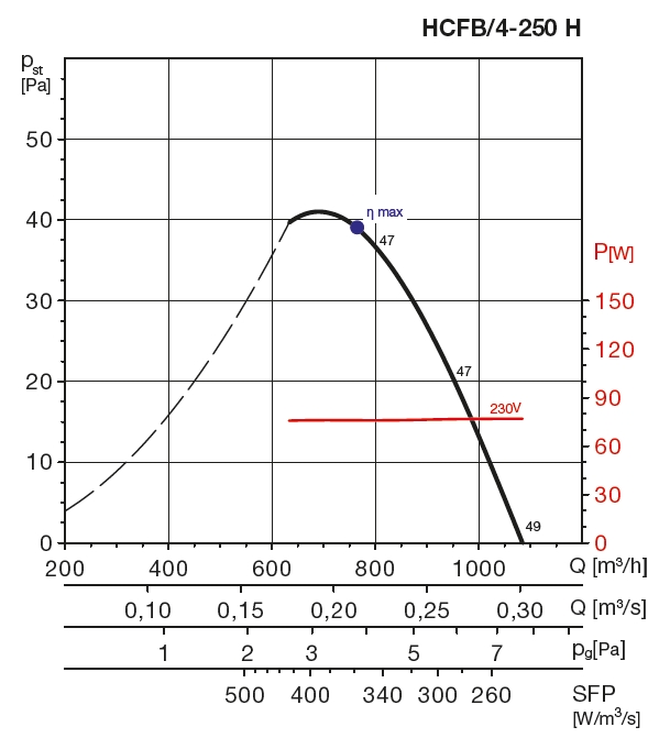 | otáčky [min-1] | průtok (0 Pa) [m3/h] | výkon [W] | napětí [V] | proud [A] | max. teplota [°C] | akust. tlak [dB(A)] | hmotnost [kg] | regulátor |