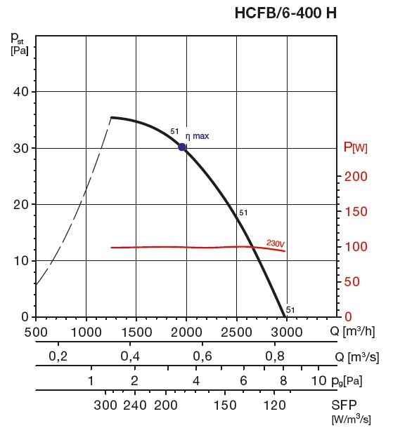 | otáčky [min-1] | průtok (0 Pa) [m3/h] | výkon [W] | napětí [V] | proud [A] | max. teplota [°C] | akust. tlak [dB(A)] | hmotnost [kg] | regulátor |
