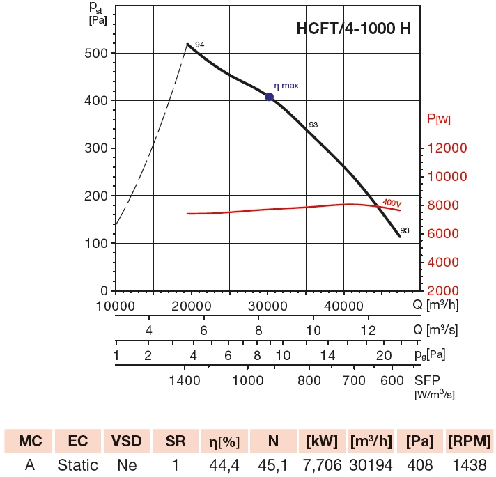 ![]() | Hluk Hluk emitovaný ventilátorem je uveden v tabulkách, měření je prováděno ve vzdálenosti rovné trojnásobku průměru oběžného kola (minimálně však 1,5 m) na straně sání. | |