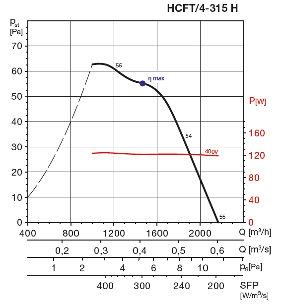 | otáčky [min-1] | průtok (0 Pa) [m3/h] | výkon [W] | napětí [V] | proud [A] | max. teplota [°C] | akust. tlak [dB(A)] | hmotnost [kg] | regulátor |