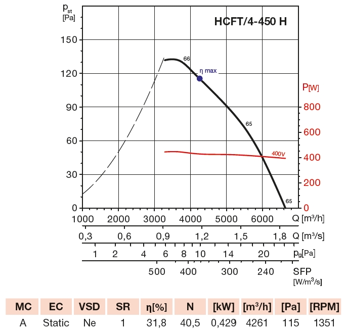 | otáčky [min-1] | průtok (0 Pa) [m3/h] | výkon [W] | napětí [V] | proud [A] | max. teplota [°C] | akust. tlak [dB(A)] | hmotnost [kg] | regulátor |