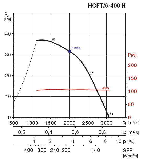 ![]() | Hluk Hluk emitovaný ventilátorem je uveden v tabulkách, měření je prováděno ve vzdálenosti rovné trojnásobku průměru oběžného kola (minimálně však 1,5 m) na straně sání. | |