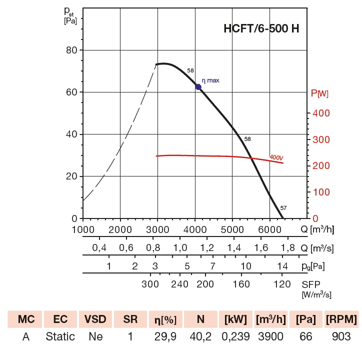 | otáčky [min-1] | průtok (0 Pa) [m3/h] | výkon [W] | napětí [V] | proud [A] | max. teplota [°C] | akust. tlak [dB(A)] | hmotnost [kg] | regulátor |