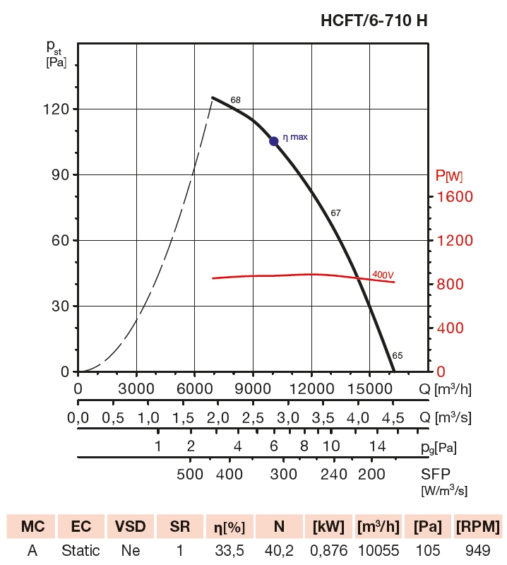 | otáčky [min-1] | průtok (0 Pa) [m3/h] | výkon [W] | napětí [V] | proud [A] | max. teplota [°C] | akust. tlak [dB(A)] | hmotnost [kg] | regulátor |