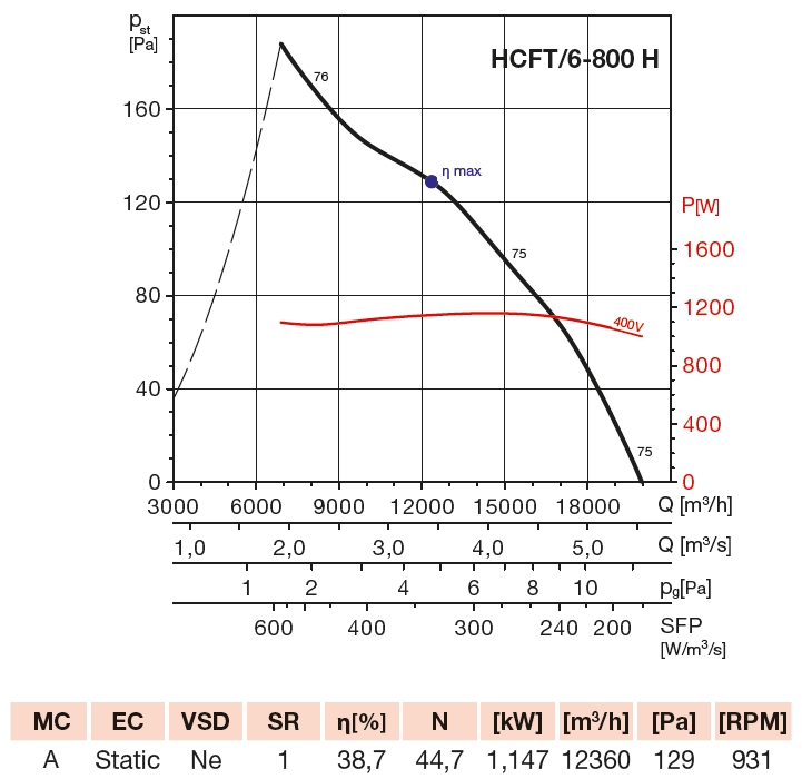 | otáčky [min-1] | průtok (0 Pa) [m3/h] | výkon [W] | napětí [V] | proud [A] | max. teplota [°C] | akust. tlak [dB(A)] | hmotnost [kg] | regulátor |