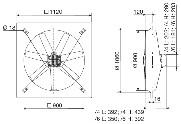 ![]() | Směr otáčení Směr otáčení je možno měnit u jednofázových i třífázových motorů. Se standardním oběžným kolem klesne při opačném smyslu otáčení průtok o cca 30%. U nástěnného provedení je standardně průtok vzdušiny od motoru k oběžnému kolu. | |