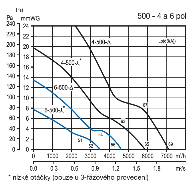 ![]() | Směr otáčení Směr otáčení je pro přívod nebo odvod ve smyslu šipky na skříni ventilátoru. Při opačném směru je nutno změnit pořadí fází. | |