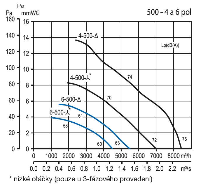 * hodnoty akustického tlaku ve vzdálenosti 1,5 m, ventilátor na střeše