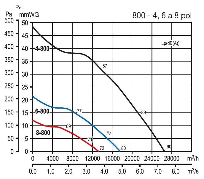 ![]() | Hluk Hluk emitovaný ventilátorem je uveden v tabulkách jako hodnoty akustického tlaku ve vzdálenosti 1,5 m na straně sání a výtlaku. Pro získání hodnot akustického výkonu v oktávových pásmech je nutno k hodnotě akustického tlaku přičíst korekční faktor v dole uvedených tabulkách. | |