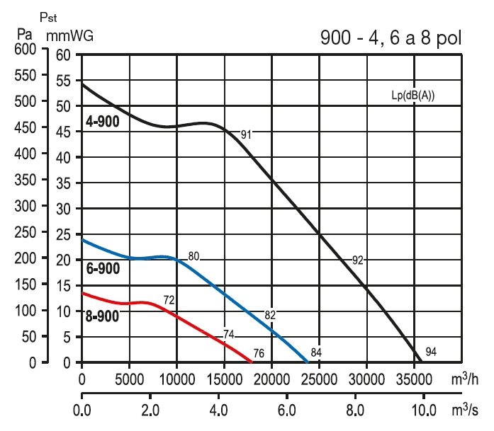 ![]() | Hluk Hluk emitovaný ventilátorem je uveden v tabulkách jako hodnoty akustického tlaku ve vzdálenosti 1,5 m na straně sání a výtlaku. Pro získání hodnot akustického výkonu v oktávových pásmech je nutno k hodnotě akustického tlaku přičíst korekční faktor v dole uvedených tabulkách. | |