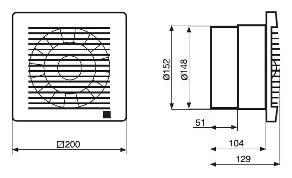 - Small axial extract fans