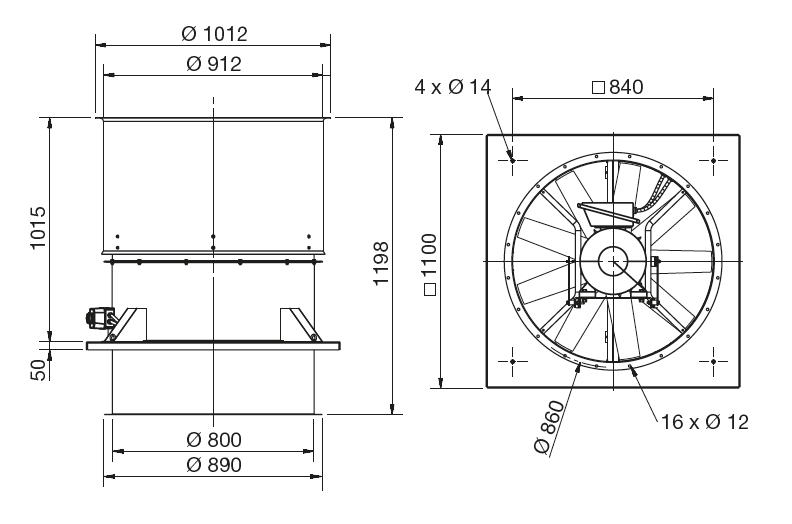 HGTT-V/4-800-6 IP55 axial flow fanVýkonné střešní ventilátory axiální pro odvod