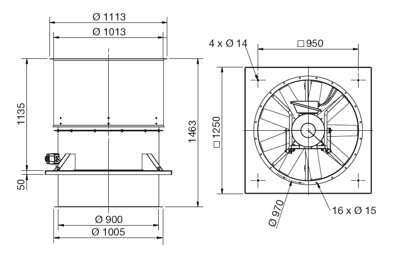 HGTT-V/4-900-6 IP55 axial flow fanVýkonné střešní ventilátory axiální pro odvod