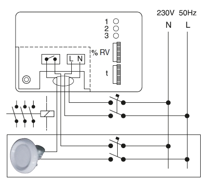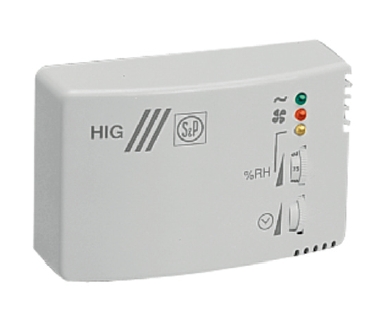 ![]() | Informace • podle nastavení spíná při určité relativní vlhkosti • napětí 230 V/50 Hz • proud 2 A (induktivní) • pracovní rozsah 60–90 % • krytí IP 21 • nastavení doběhu 1–25 min. • provedení s dvojitou izolací • použití pro ovládání DCV systémů, ventilátorů, ovlhčovačů a zvlhčovačů • montáž na omítku | |