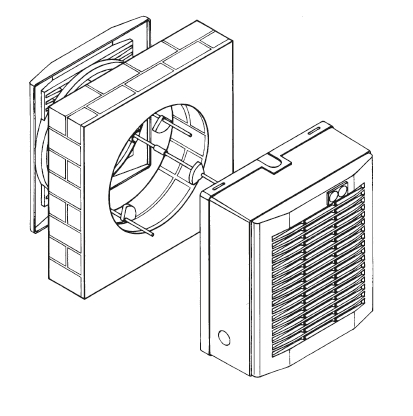 ![]() | Svorkovnice Svorkovnice je přístupná po sejmutí čelní mřížky ventilátoru. Připojení je kabelem pod omítkou nebo po omítce. Svorkovnice obsahuje odlehčovací sponu proti vytržení kabelu. | |