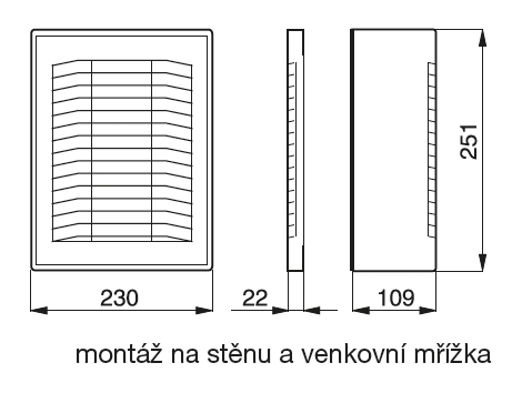 ![]() | Skříň Skříň je z nárazuvzdorného plastu, barva je bílá. Ventilátor je vybaven zpětnou žaluziovou klapkou, u typu M ruční, u typů A a AE elektrickou. | |